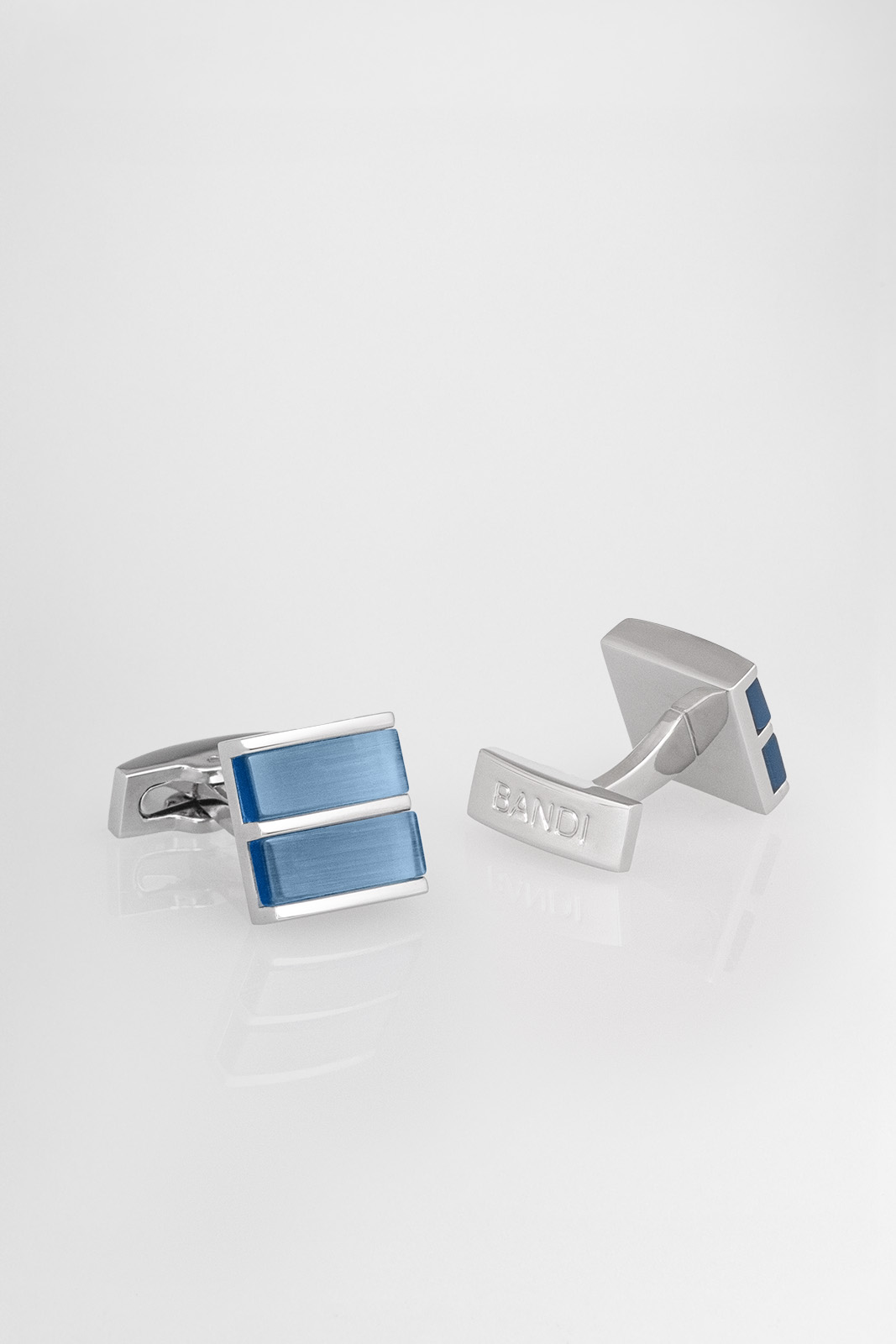 Manžetové gombíky BANDI LUX 265 zaujmú moderným dizajnom a čistými líniami. Kombinácia striebornej a modrej farby podčiarkuje ich nadčasový vzhľad.