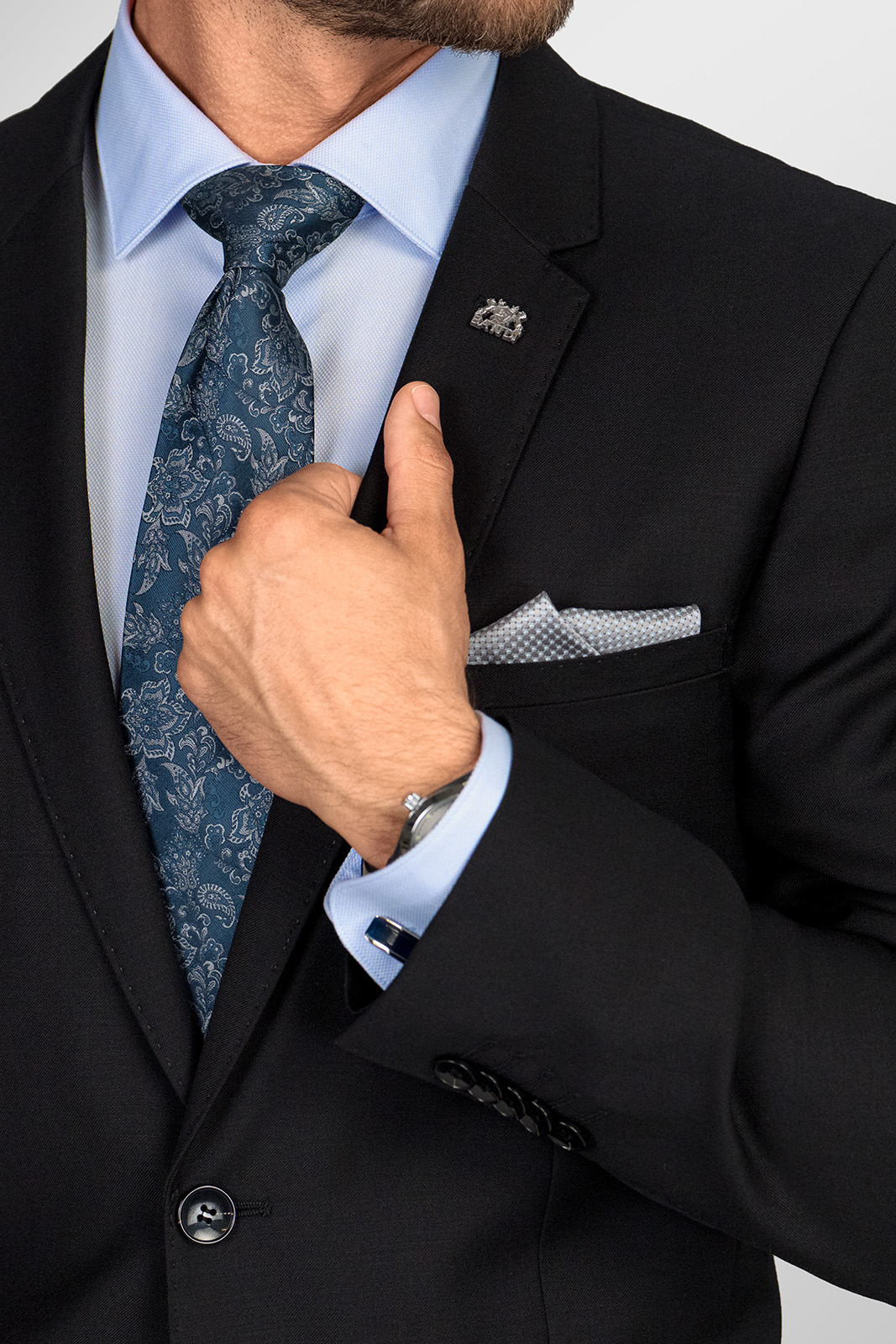 Oživte svoj formálny outfit pánskou kravatou s elegantným vzorom. Model LIRANO 02 v tmavomodrej farbe s ornamentálnym motívom skvele doplní váš slávnostný vzhľad. Hodí sa na svadby, plesy, kultúrne akcie aj výnimočné spoločenské príležitosti, kde chcete pôsobiť štýlovo a originálne.