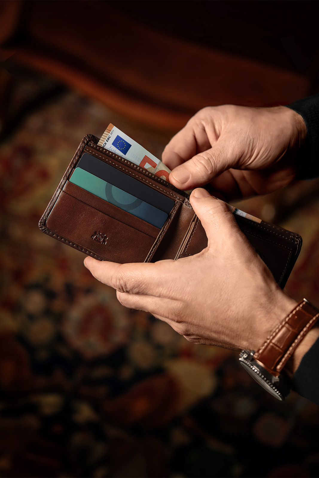 ďalšie informáciePeňaženka BANDI CASETTI ponúka štyri priehradky na karty, dva oddiely na bankovky a uzatvárateľné vrecko na mince, ktoré zapnete kovovým cvočkom.