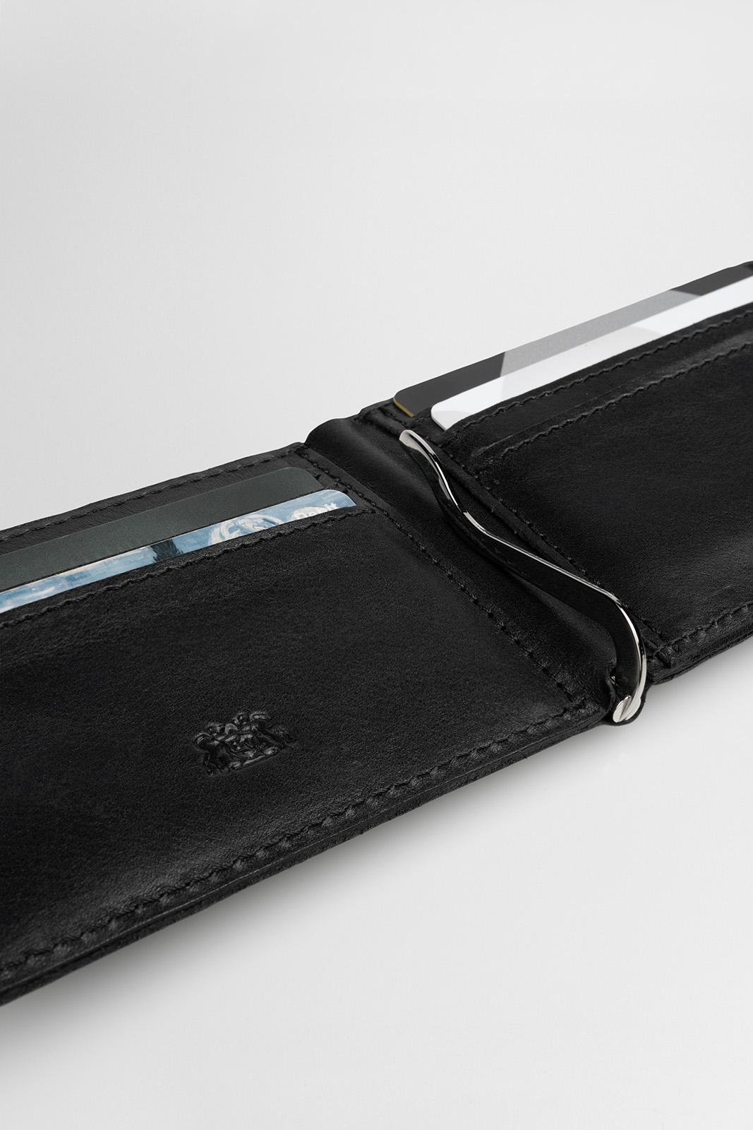 Muži určite ocenia malé rozmery jedinečnej dolárovky BANDI MONETO, vďaka ktorým sa ľahko zmestí do každého vrecka. Praktické usporiadanie ponúka kovovú svorku na bankovky, šesť priehradiek na platobné a vernostné karty a mincovník uzatvárateľný patentným gombíkom.