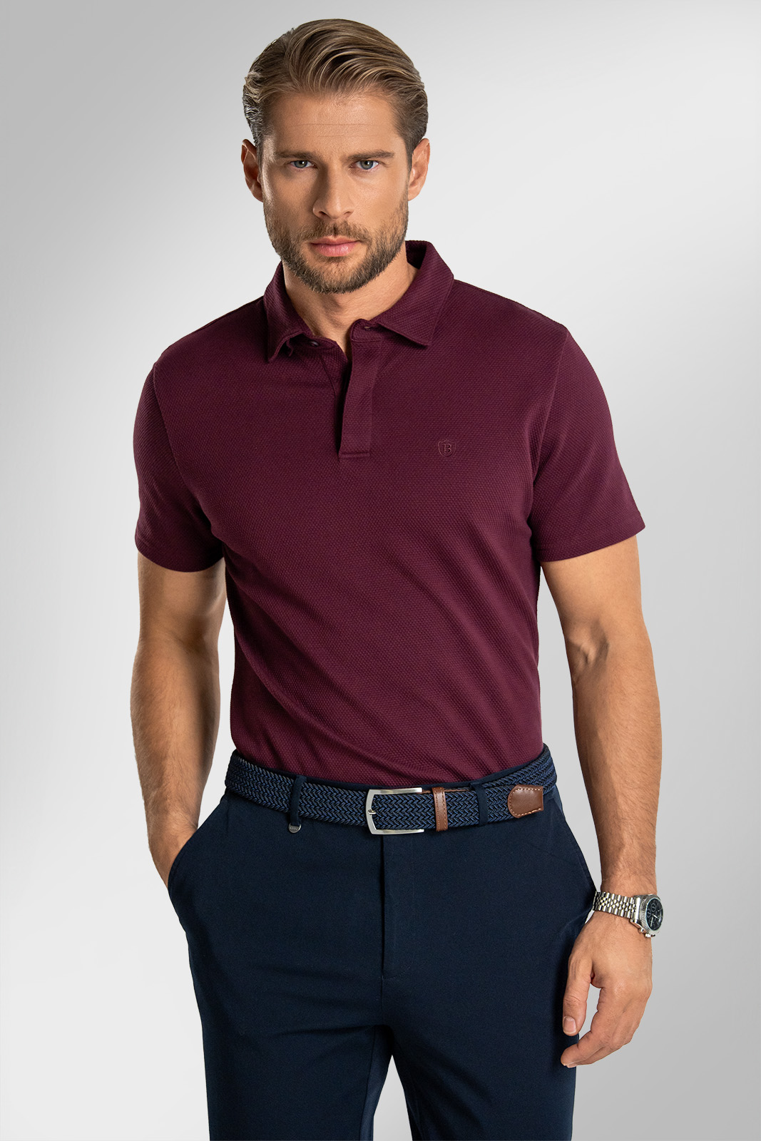 Tmavý vínový odtieň vynikne v kombinácii s námorníckou modrou, so sivou a svetlými tónmi. Polokošeľa FORGERTI je ideálnou voľbou pre mužov, ktorí chcú pôsobiť sebavedome – či už samostatne, alebo pod sakom z kolekcie BANDI.