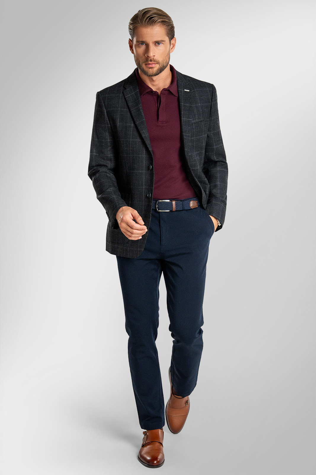 Doplňte polokošeľu FORGERTI tmavomodrými nohavicami BANDI a koženým opaskom v teplom hnedom odtieni. Vytvoríte moderný a zároveň veľmi vycibrený outfit.