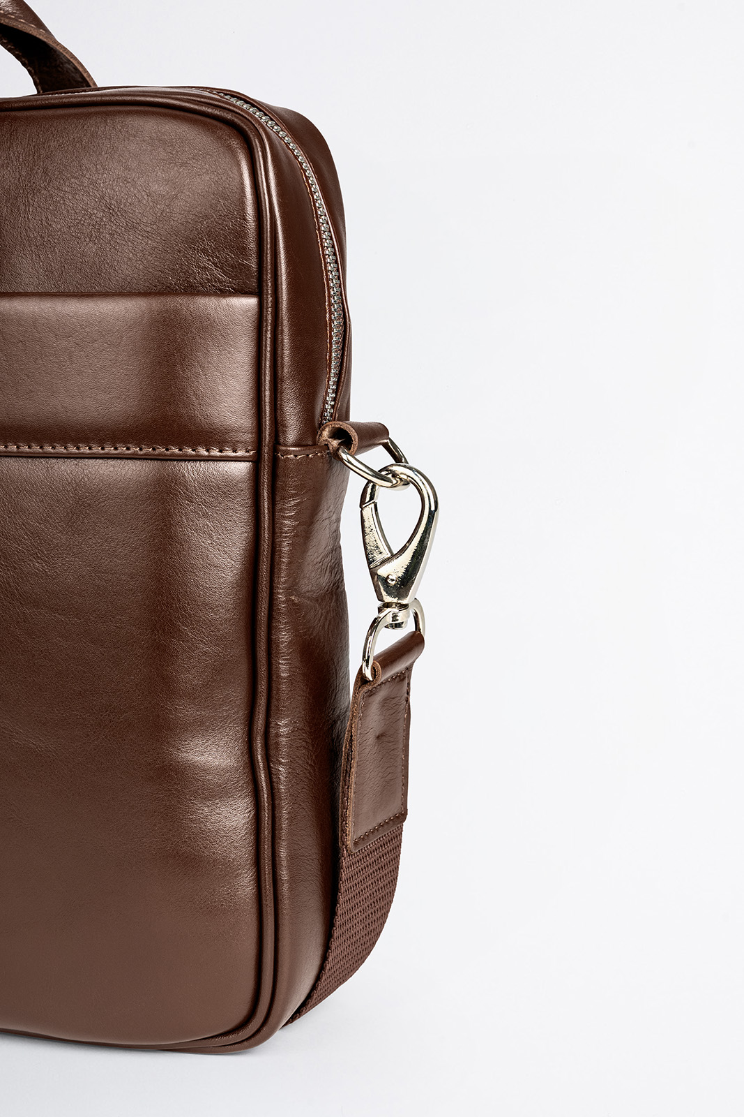 Kvalitný vrchný materiál z pravej hovädzej kože, pevná konštrukcia, polstrovanie a podšívka zaručujú, že sa vašim veciam nič nestane. Moderný dizajn a klasická hnedá farba vám poskytnú všestranné využitie a dodajú vášmu vzhľadu štýl.