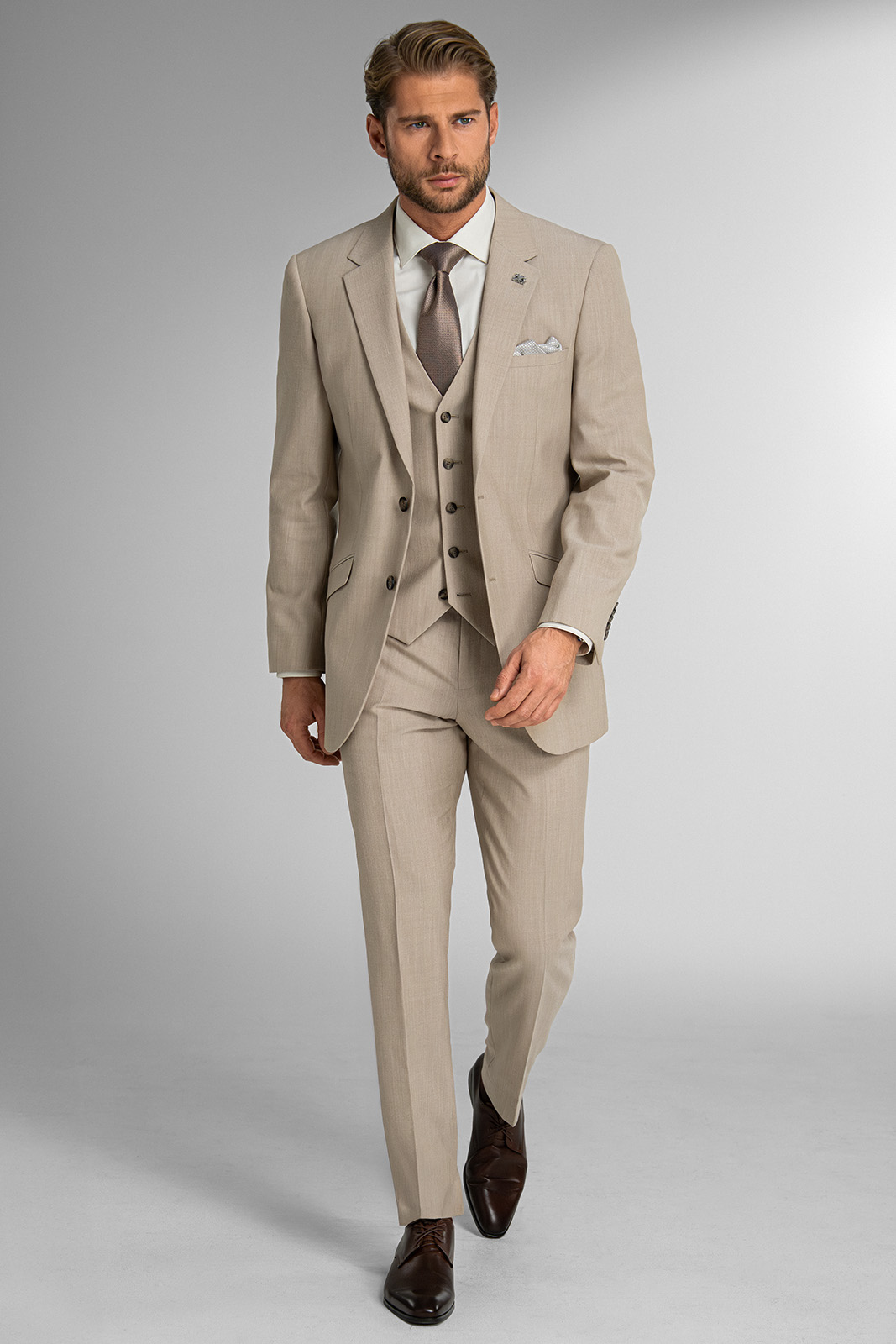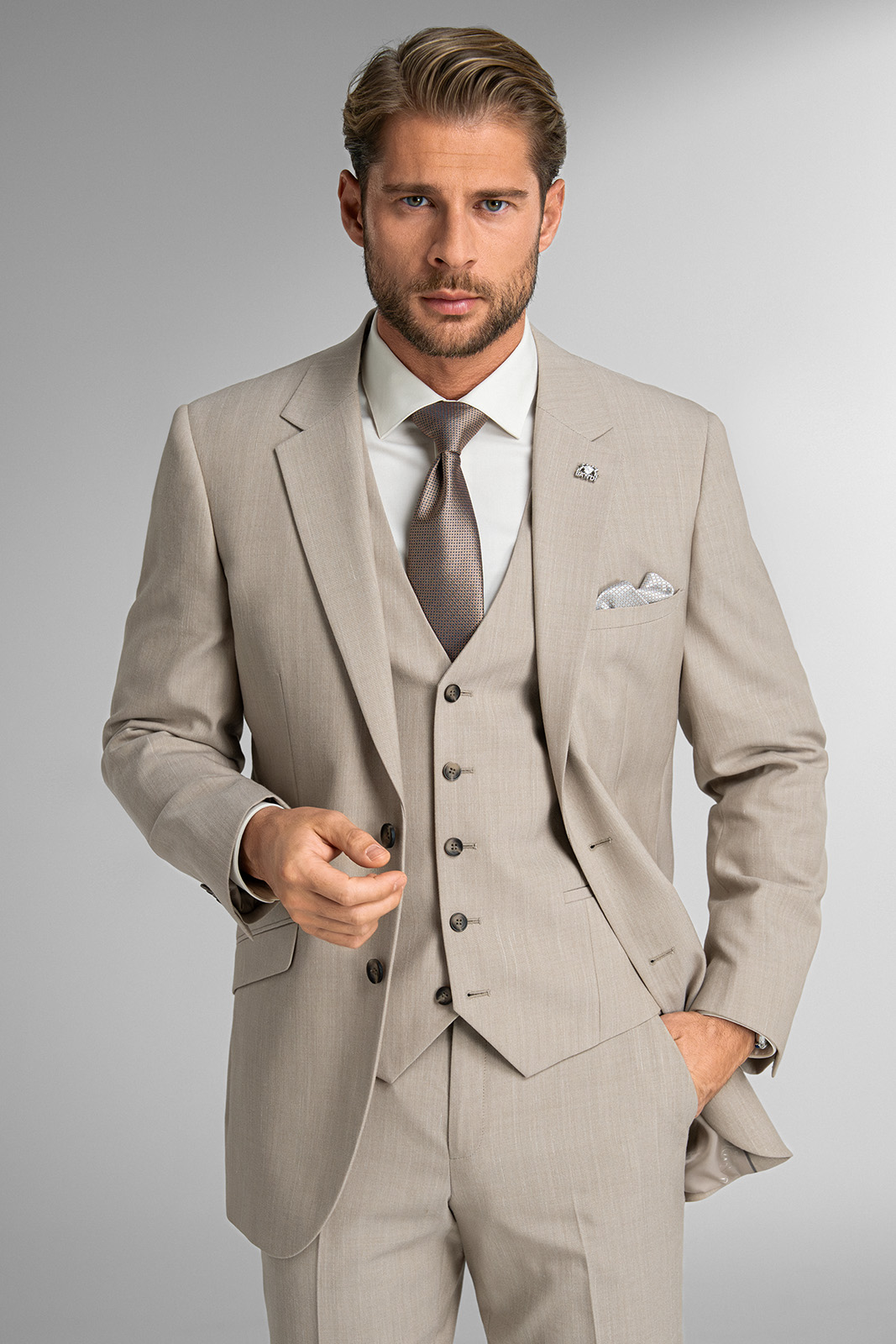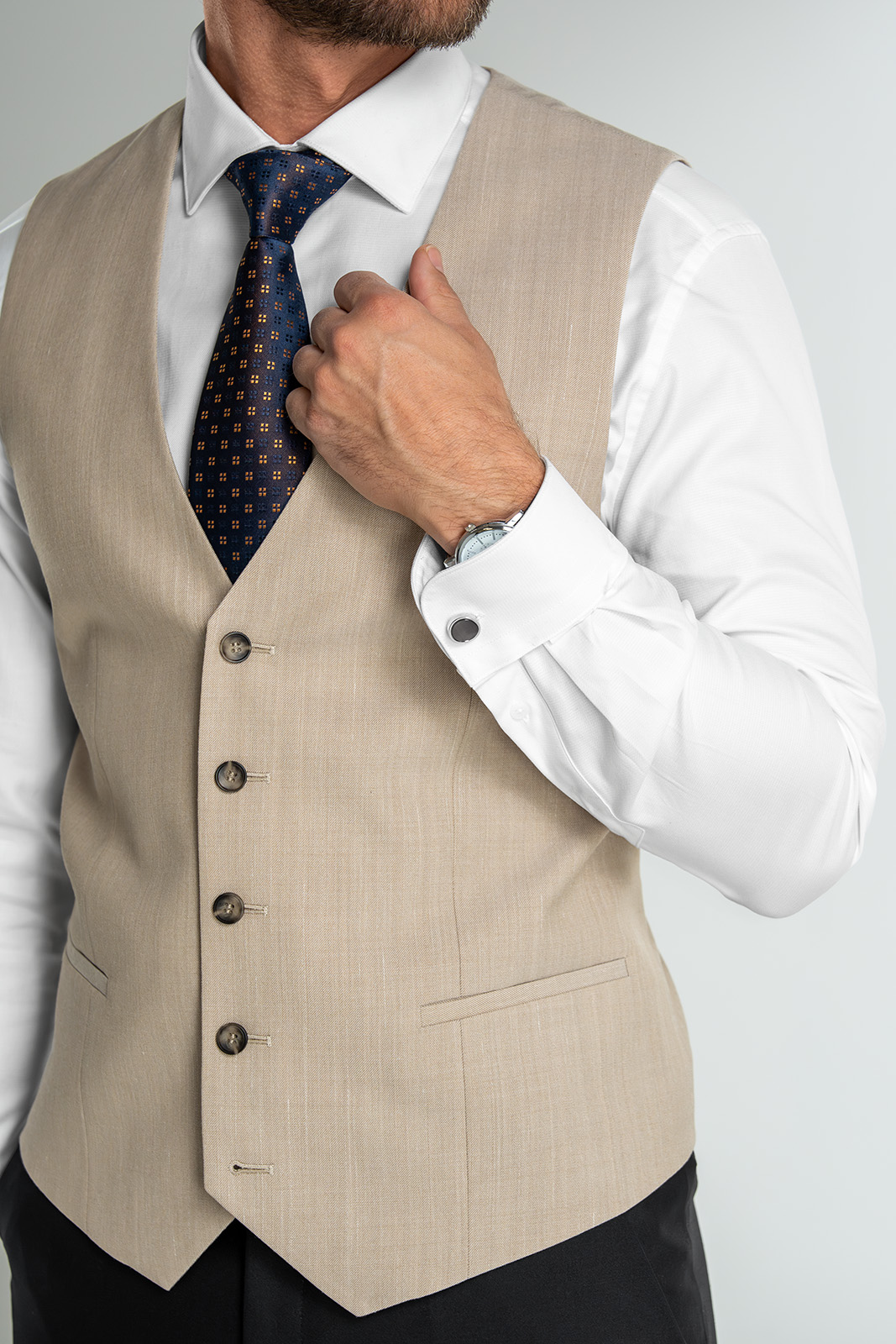 Pánska vesta FIORENTO prináša do slávnostného outfitu ľahkosť, eleganciu a prirodzený štýl. Teplý pieskový odtieň pôsobí jemne a kultivovane, vďaka čomu je ideálnou voľbou na svadobný deň a ďalšie spoločenské príležitosti.