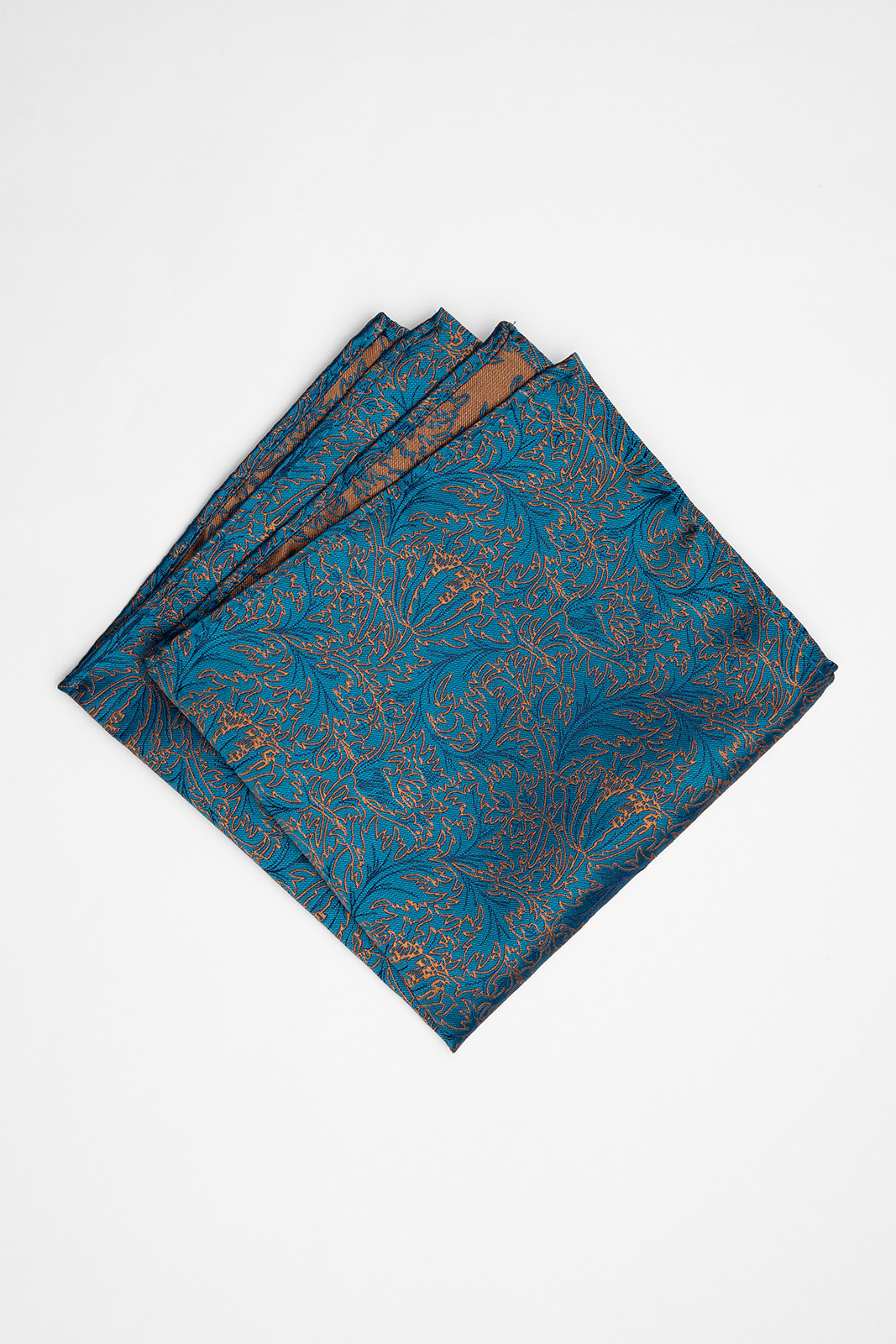 Chcete dodať svojmu outfitu šmrnc a podčiarknuť svoj osobitý štýl? Model MERTO 03 v modrej farbe s oranžovým ornamentálnym vzorom je ideálnou voľbou. Vreckovka pôsobí štýlovo a zároveň si zachováva elegantný vzhľad.