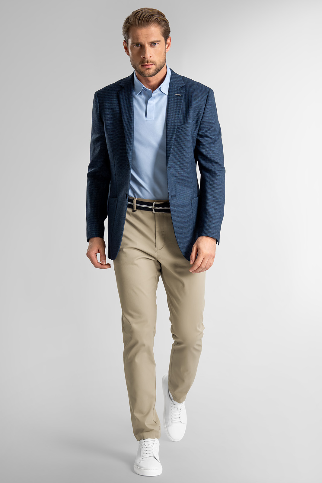 ďalšie informácieĽahká bavlnená tkanina s prímesou elastanu vytvára zabezpečuje pocit pri nosení a dostatočnú priedušnosť v teplejších dňoch. Materiál je mierne pružný, čo podporuje voľnosť pri pohybe a lepšie prispôsobenie postave. Vďaka tomu si model zachováva upravený dojem aj pri celodennom nosení.