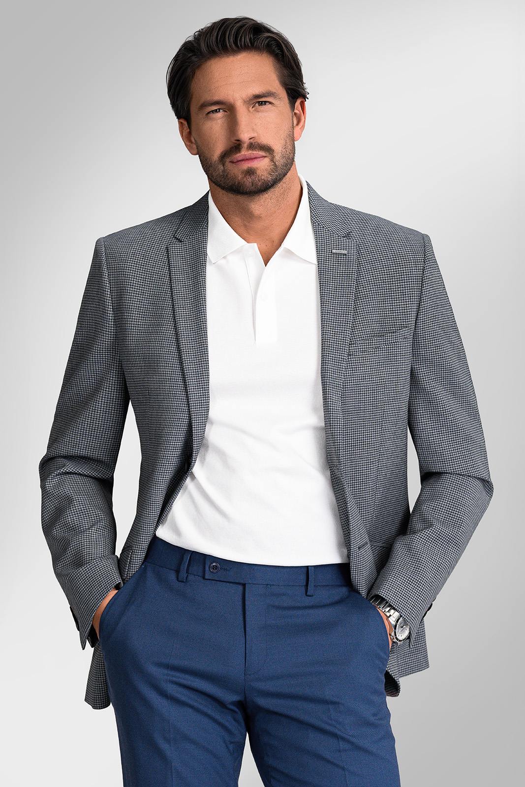 ďalšie informáciePrepracovaný dizajn modelu MARESCO podčiarkuje úpletový golier, manžety na rukávoch a léga s dvomi gombíkmi. Tieto elegantné detaily mu dodávajú univerzálny charakter, vďaka ktorému ho ľahko využijete nielen vo voľnom čase, ale aj na neformálnych pracovných schôdzkach.
