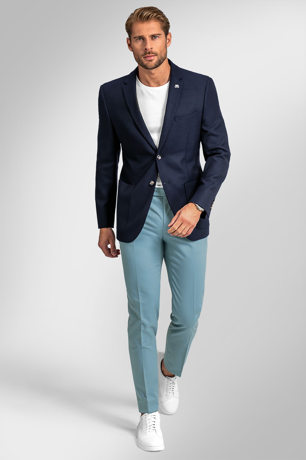 Pre svieži a moderný vzhľad kombinujte sako LORENZIO s bielym tričkom BANDI, chinos nohavicami a doplnkami v hnedých tónoch.
