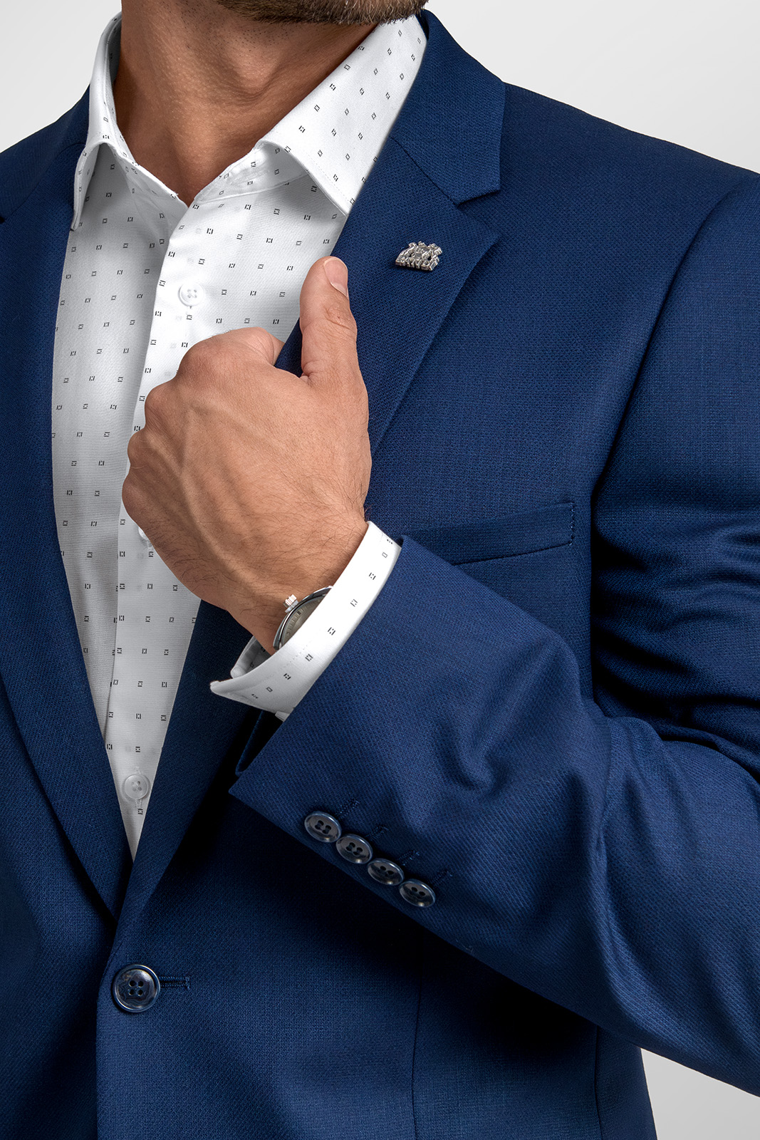 Návrhári BANDI zdôraznili eleganciu obleku Tiberio luxusnou vlnenou látkou s decentnou textúrou a so sýtomodrým odtieňom. Obľúbený strih je perfektnou voľbou pre moderných mužov s vysokými nárokmi na kvalitu, ktorí chcú dokonalým oblečením vyjadriť svoj výnimočný štýl.