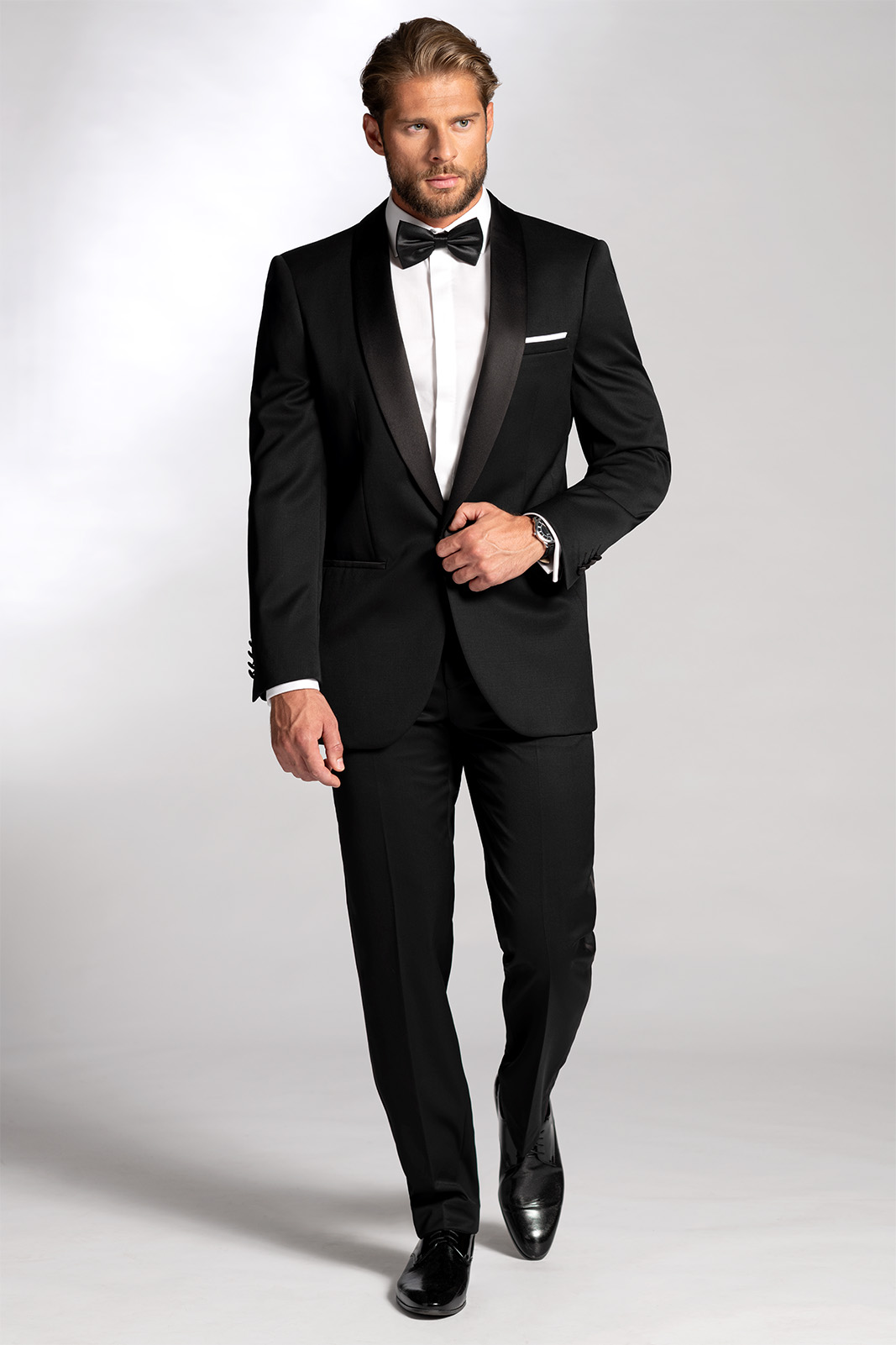 Honosná čierna látka smokingu zo 100 % vlny najvyššej kvality umocňuje jeho prestížny charakter. Samozrejmosťou je vysoký podiel meďnatých vlákien v podšívke saka. Spoločne sa starajú o to, že v lete oblek príjemne chladí a v zimných mesiacoch vás, naopak, zahreje.