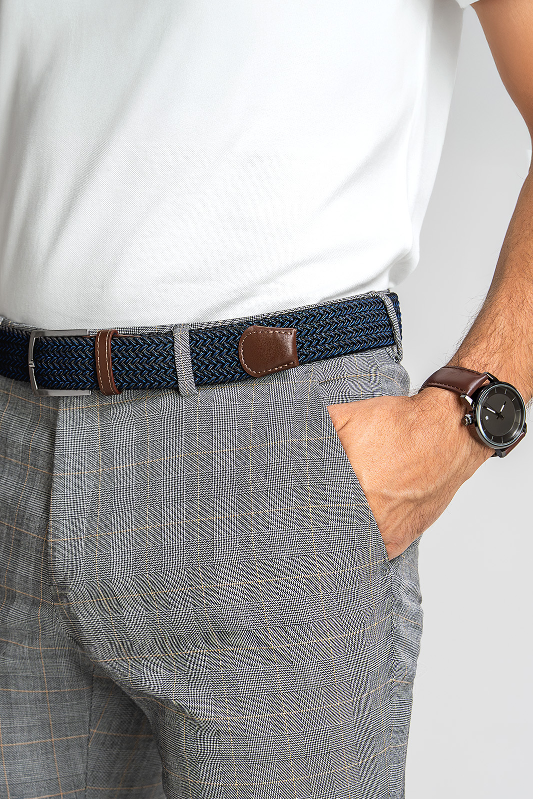 Tmavý opasok v modro-čiernej kombinácii je ideálnou voľbou pre moderného muža, ktorý hľadá štýlový a zároveň praktický doplnok. Elastický materiál zaisťuje pohodlie pri nosení a prirodzene sa prispôsobí vášmu pásu. Opasok si tak ľahko zapnete presne tam, kde potrebujete.