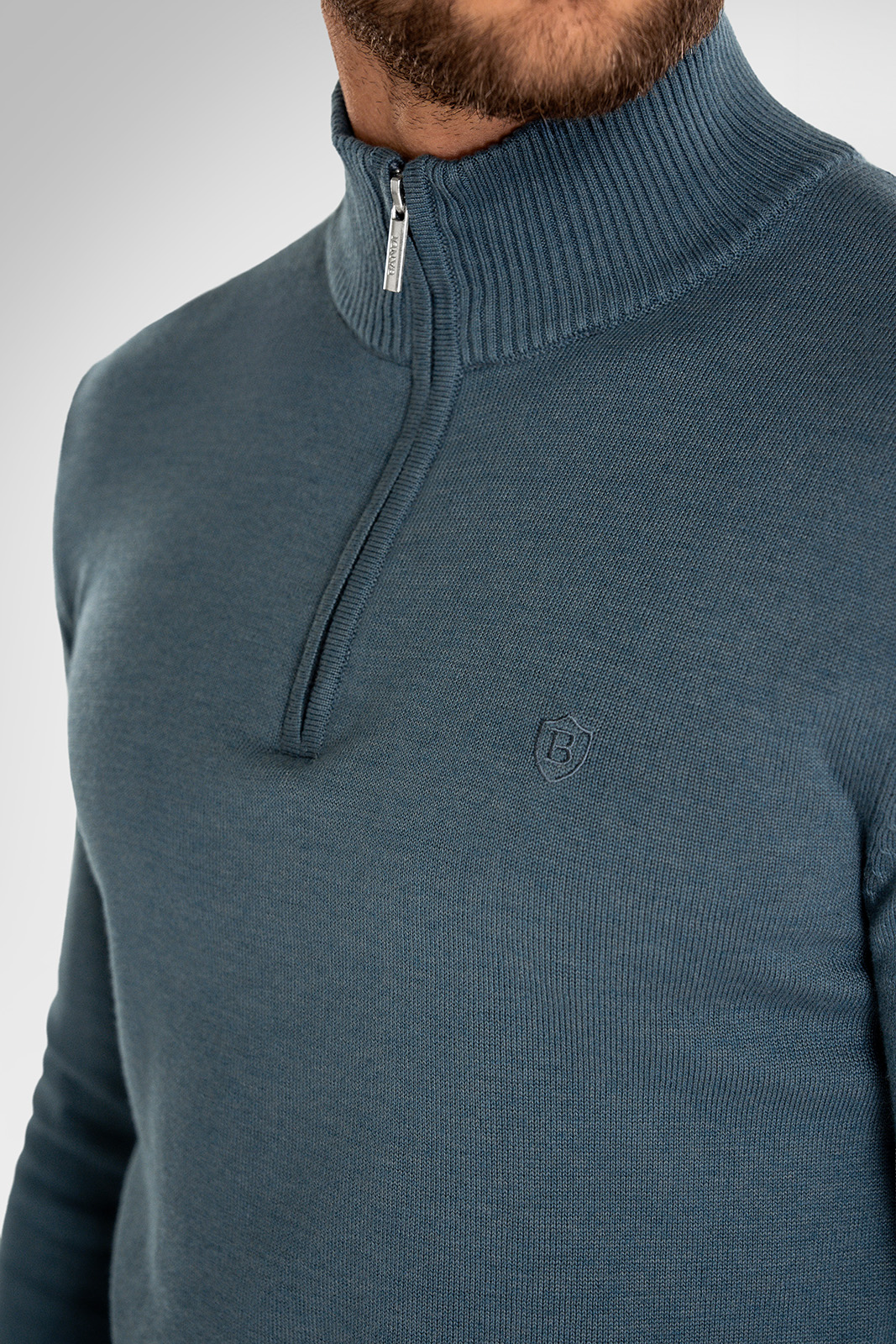 ďalšie informácieZips dodáva poloroláku jemne športový charakter, ktorý však vďaka premyslenému strihu a decentným farbám zostáva plne v medziach elegantného obliekania. Modrosivý odtieň pôsobia sviežo, opticky rozjasňuje celý outfit a zároveň zachová formálny dojem.