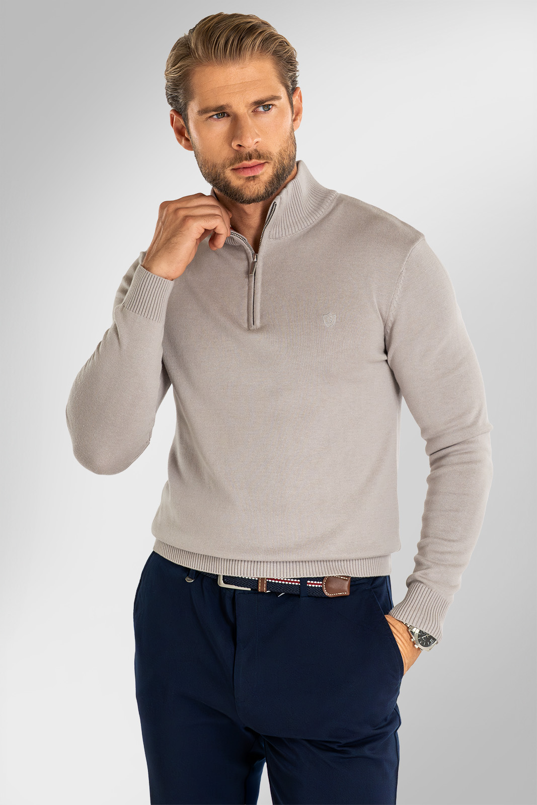 Pánsky polorolák CORTESO so stojačikom a zipsom je ideálnou voľbou pre mužov, ktorí hľadajú sveter spájajúci praktickosť, pohodlie a elegantný vzhľad. Pomocou zapínania na zips si ľahko prispôsobíte výšku výstrihu aktuálnym potrebám. Úplne zapnutý zahreje v chladnom počasí, mierne rozopnutý, naopak, vytvorí uvoľnenejší dojem.