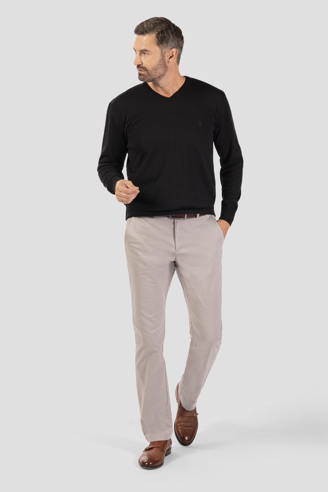Hľadáte do svojho šatníka univerzálny kúsok oblečenia? Pánsky sveter VALIGIO bude skvelou voľbou. Ľahký, a predsa hrejivý, dizajn z jemného úpletu v čiernej farbe využijete ako do práce, tak aj na voľný čas. Vďaka vysokému podielu bavlny v látke ho môžete obliecť v chladnom počasí spolu s tričkom. Pri jarných a jesenných príjemných teplotách vám sveter umožní nosenie priamo na tele, pretože takzvane „nehryzie“.