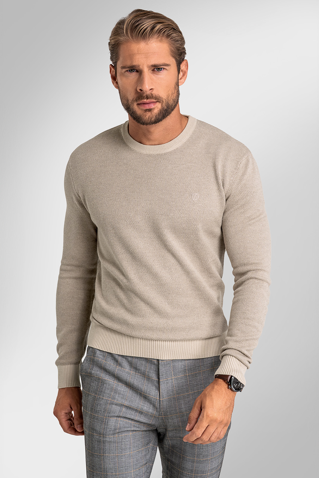 ďalšie informácieŠtruktúrovaný úplet pánskeho svetra EDGARO vytvára zaujímavý povrch, ktorý decentne ozvláštni celý outfit. Vďaka zmesi bavlny a akrylu je materiál pohodlný, priedušný a zároveň si dobre zachováva tvar. Sveter sa menej krčí a ľahko udržiava aj pri pravidelnom nosení. Okrúhly výstrih v tvare písmena U pôsobí čisto a elegantne – skvele sa kombinuje s košeľou aj s tričkom.