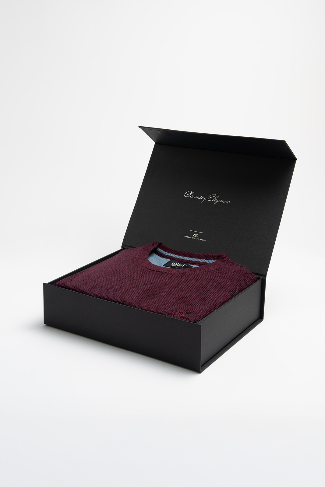Ak hľadáte darček, ktorý spája eleganciu a praktickosť, darčekový set BANDI s pánskym svetrom v luxusnej krabici je tou správnou voľbou. Elegantný sveter EDGARO v bordó odtieni sa stane obľúbeným kúskom v šatníku každého muža.