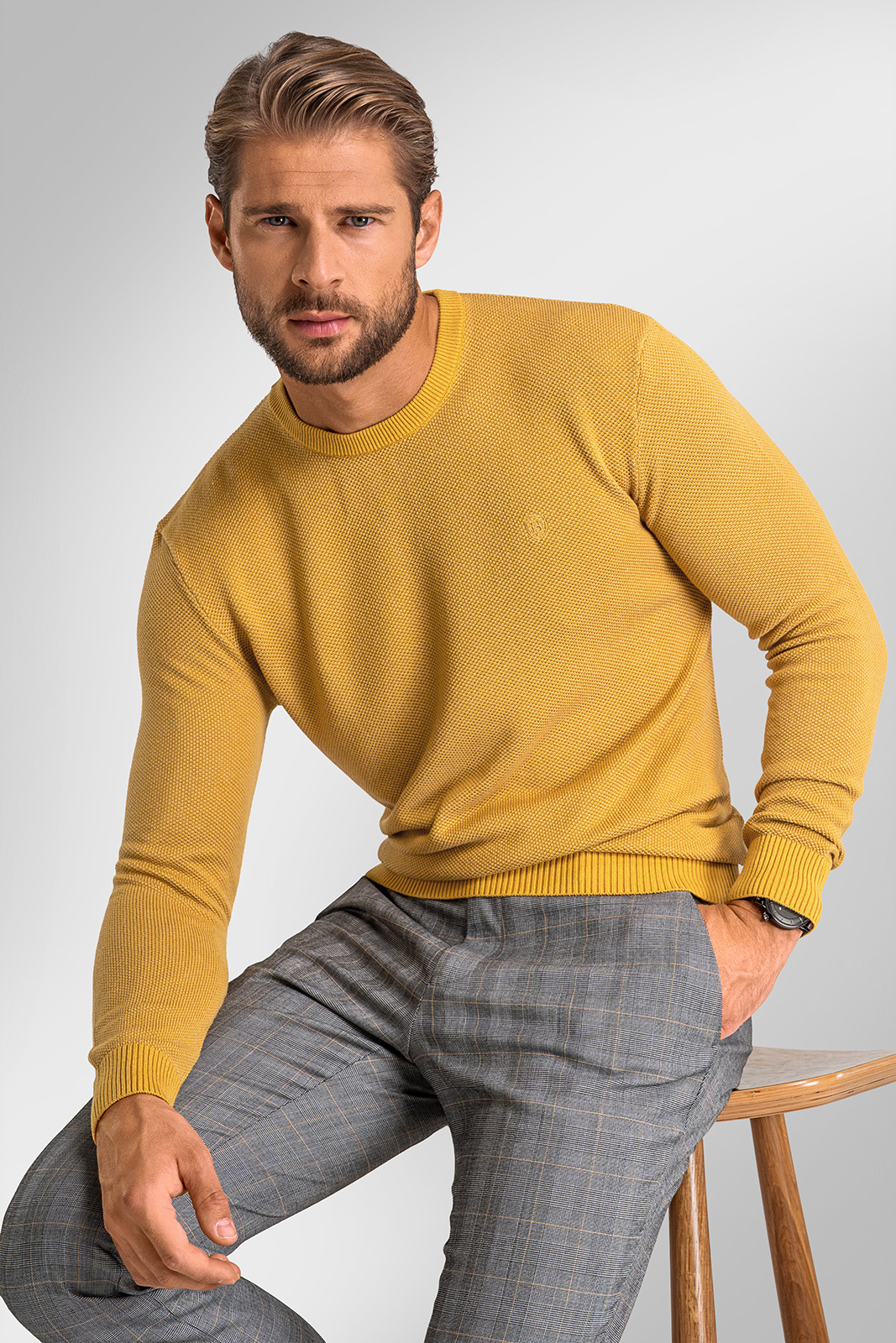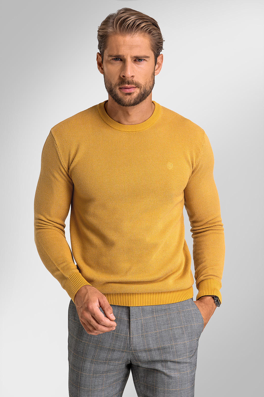 Ak hľadáte darček, ktorý spája eleganciu a praktickosť, darčekový set BANDI s pánskym svetrom v luxusnej krabici je tou správnou voľbou. Elegantný sveter EDGARO v tmavožltom odtieni sa stane obľúbeným kúskom v šatníku každého muža.