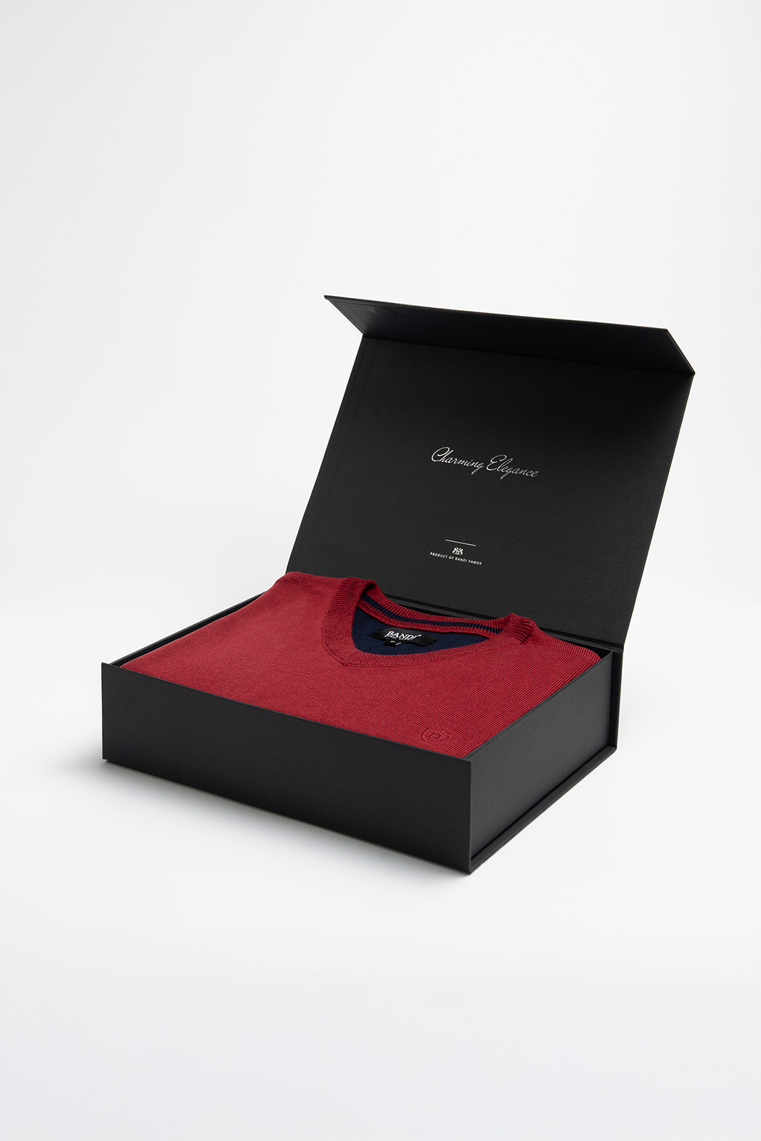 Ak hľadáte darček, ktorý spája eleganciu a praktickosť, darčekový set BANDI s pánskym svetrom v luxusnej krabici je tou správnou voľbou. Elegantný sveter MARCELIO vo vínovej farbe sa stane obľúbeným kúskom v šatníku každého muža.