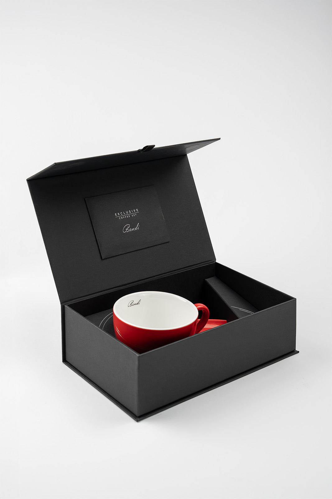 Porcelánová šálka na kávu BANDI Rosso, 280 ml, v darčekovom boxe