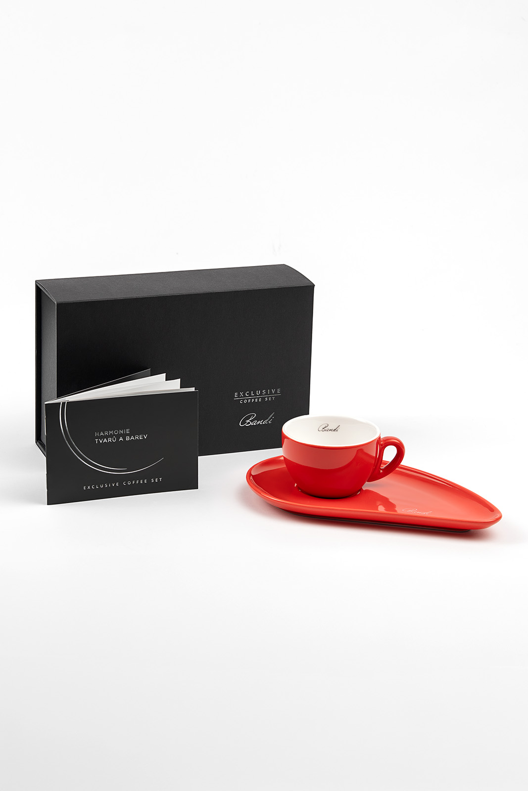 Porcelánová šálka na kávu BANDI Rosso, 80 ml, v darčekovom boxe