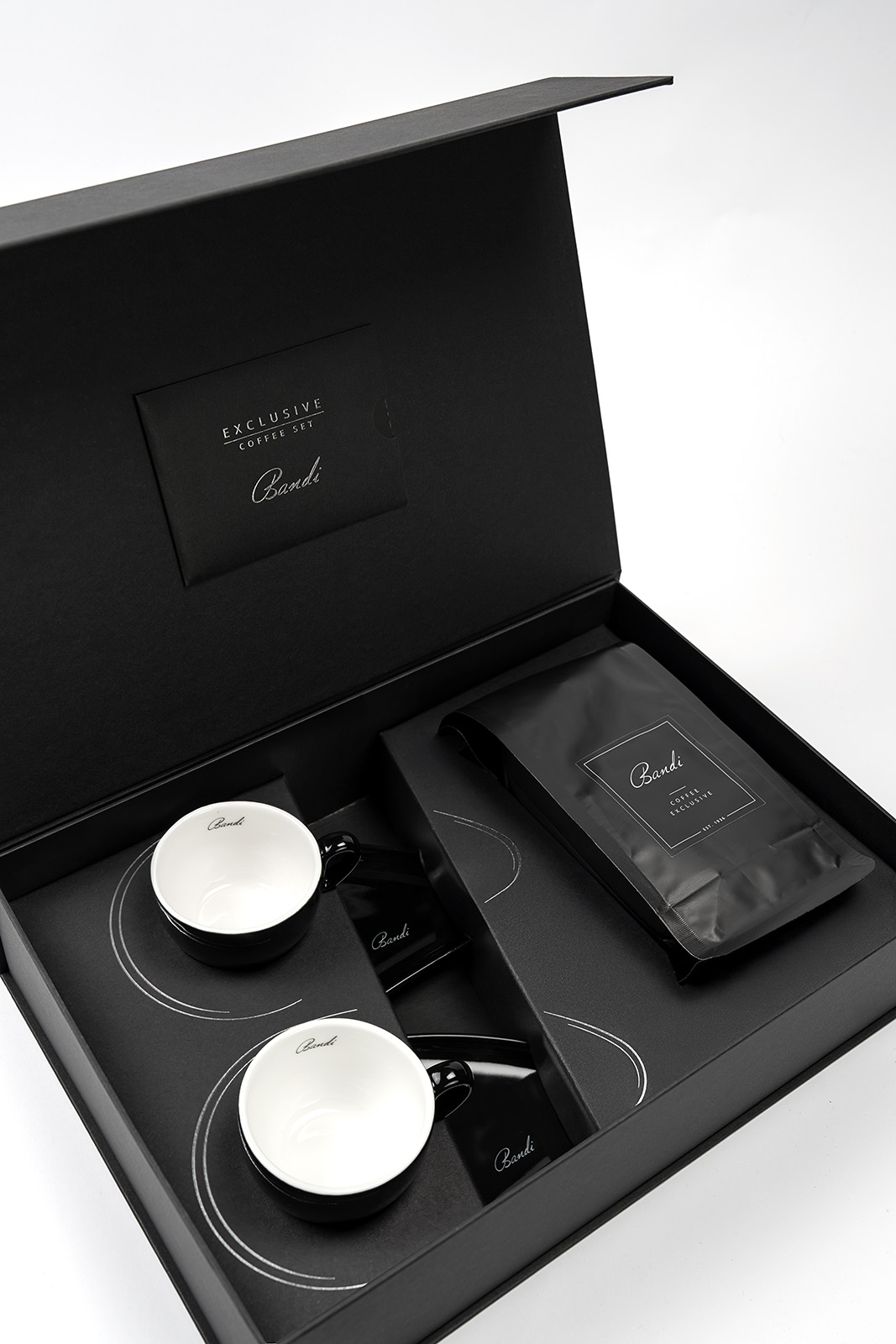 Hľadáte darček, ktorý nadchne skutočných milovníkov kávy? Čierne porcelánové šálky BANDI spolu s čerstvo upraženou zrnkovou kávou v luxusnom balení sú perfektným darčekom pre každého, kto si rád vychutnáva svoj rituál a chvíľku pohody.