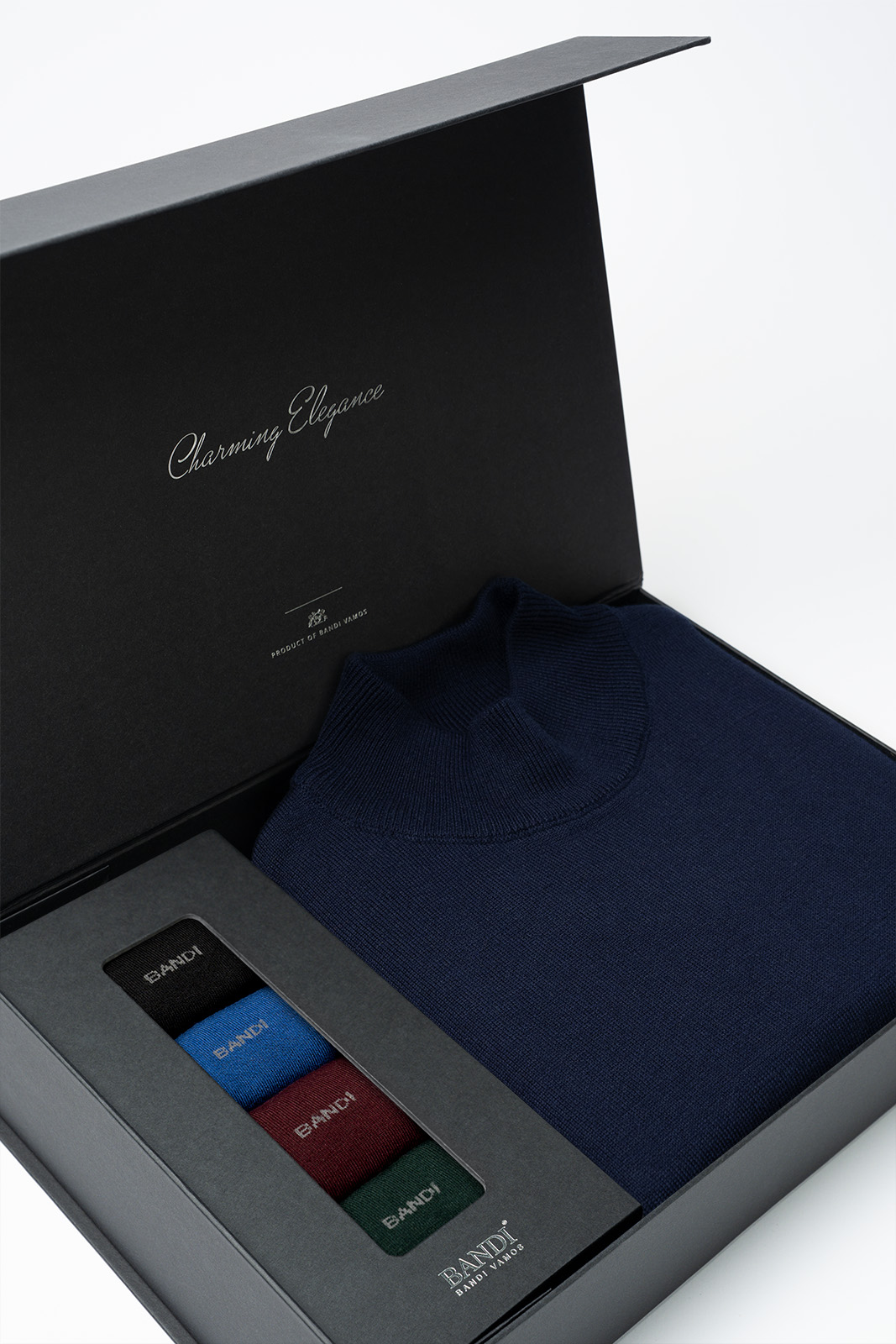 Darčeková súprava pánskeho roláka BANDI a ponožiek BAMBOO predstavuje dokonalé spojenie pohodlia a nadčasovej elegancie. Perfektne dopĺňa pánske outfity do kancelárie, na voľný čas aj pri neformálnych spoločenských príležitostiach.