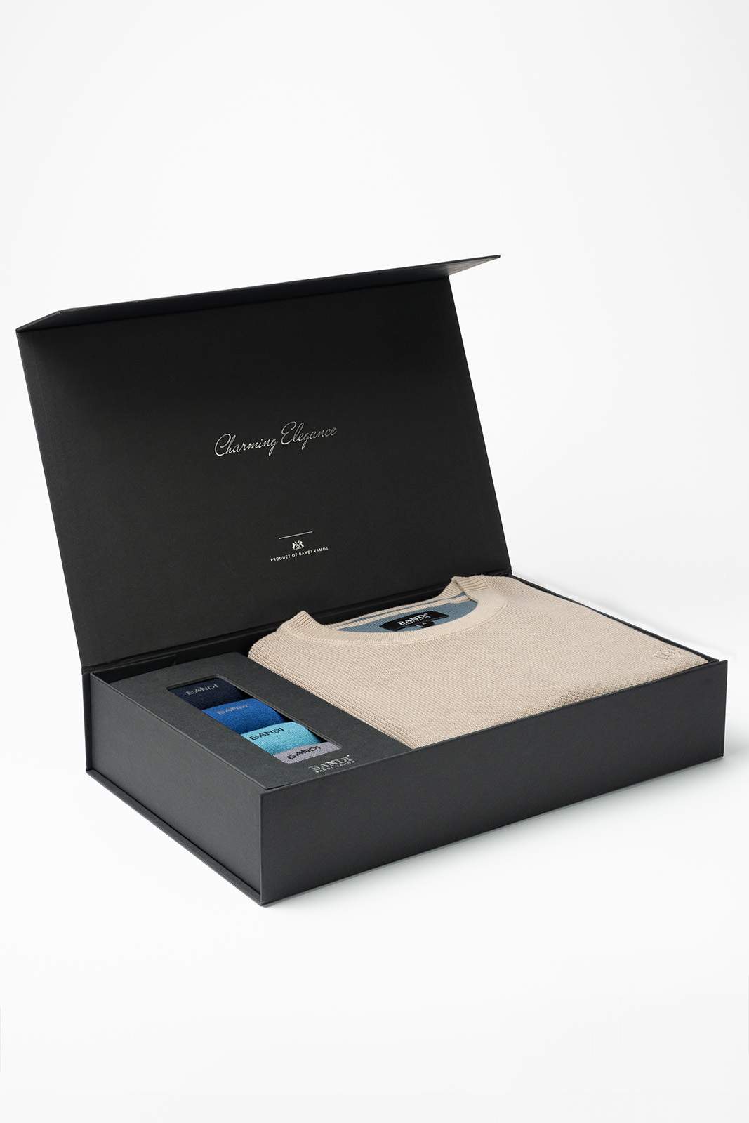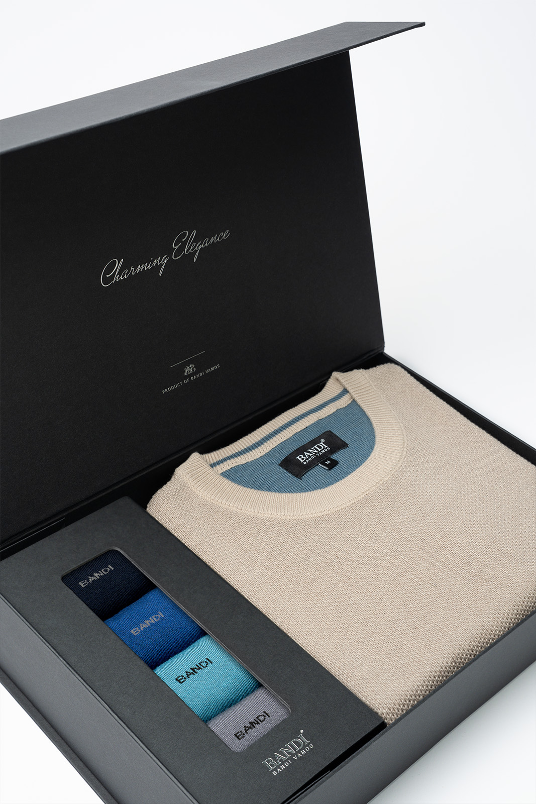 Darčeková súprava pánskeho svetra BANDI a ponožiek BAMBOO predstavuje dokonalé spojenie pohodlia a nadčasovej elegancie. Perfektne dopĺňa pánske outfity do kancelárie, na voľný čas aj pri neformálnych spoločenských príležitostiach.