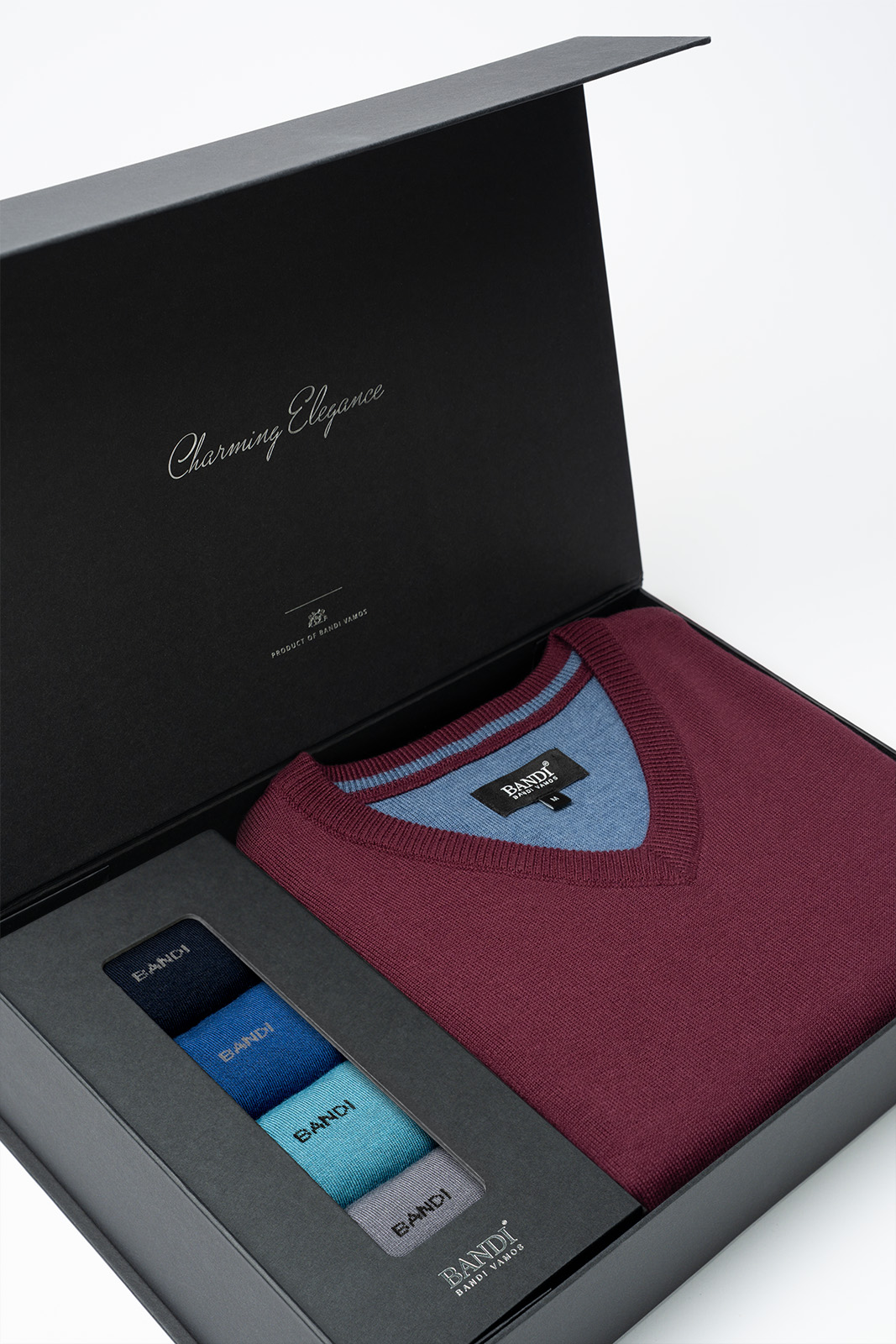 Darčeková súprava pánskeho svetra BANDI a ponožiek BAMBOO predstavuje dokonalé spojenie pohodlia a nadčasovej elegancie. Perfektne dopĺňa pánske outfity do kancelárie, na voľný čas aj pri neformálnych spoločenských príležitostiach.