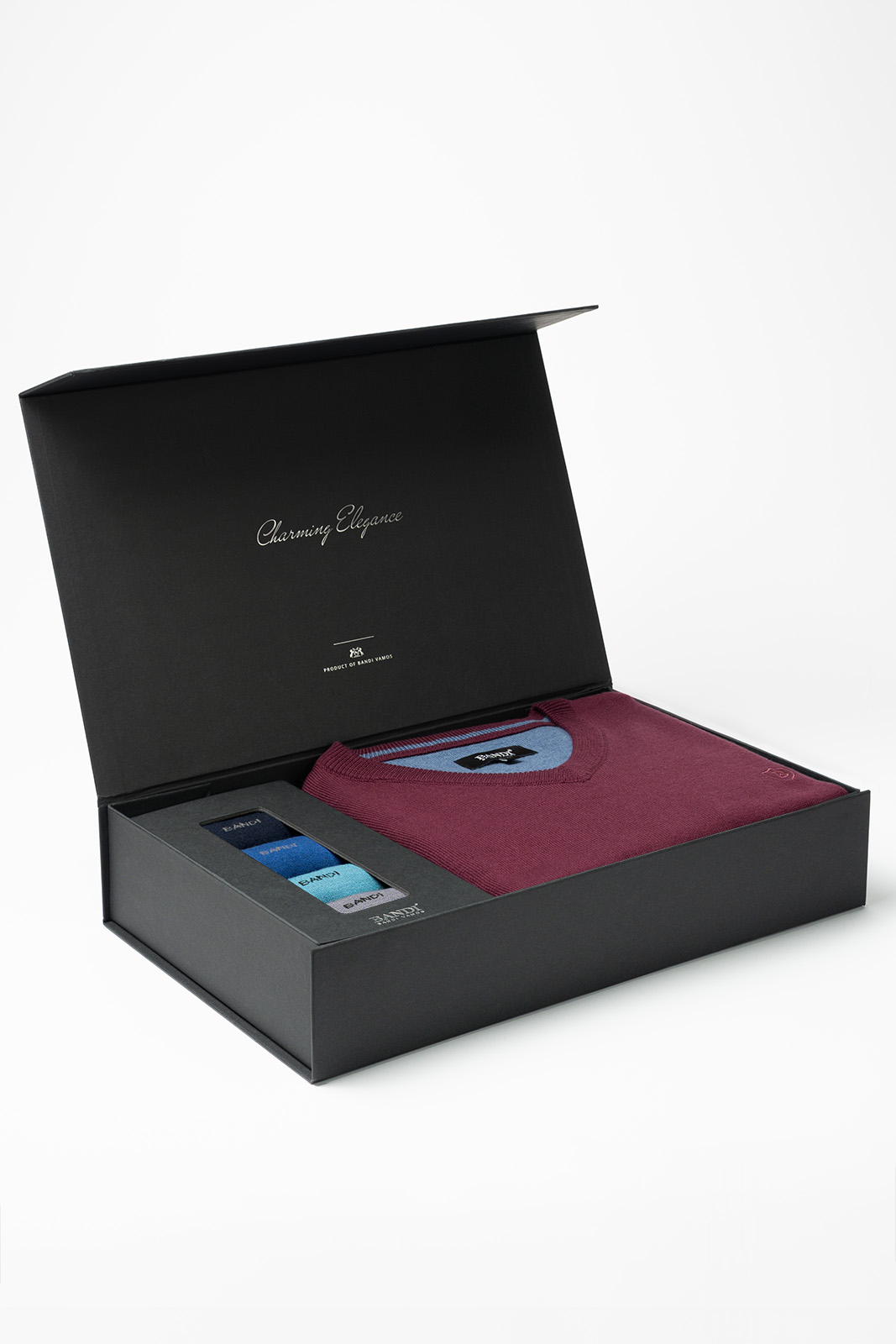 Set pánskeho svetra MARCELIO Marsala a ponožiek v darčekovom boxe