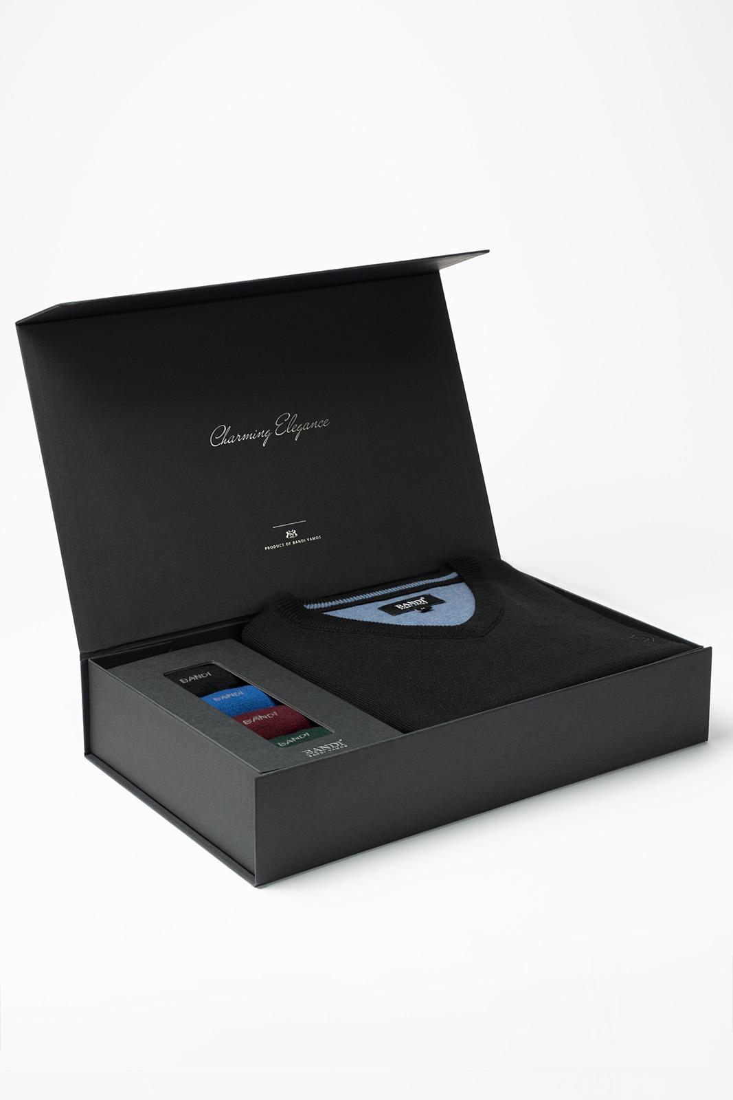 Set pánskeho svetra MARCELIO Nero a ponožiek v darčekovom boxe