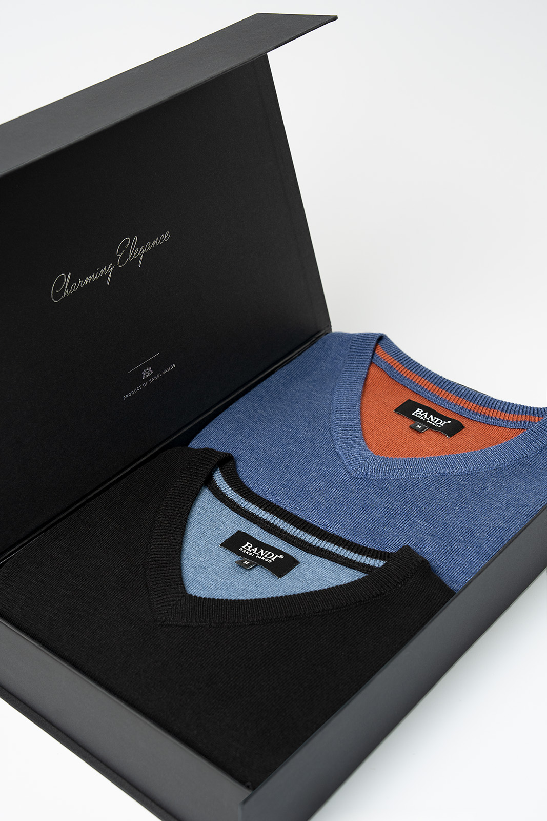 ďalšie informácieDokonale zladená dvojica elegantných svetrov BANDI MARCELIO v modrom a čiernom odtieni v jedinečnej súprave ponúkne obdarovanému mužovi farebné oživenie a perfektnú všestrannosť. Ľahko si tak zostaví jedinečné outfity do zamestnania aj pohodlné kombinácie na voľný čas.