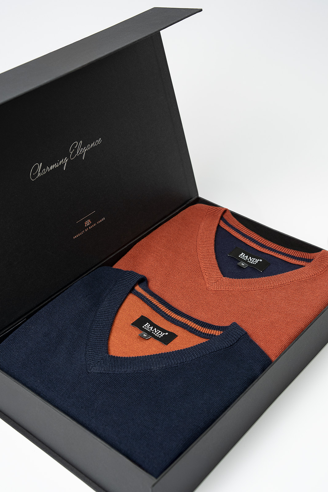 ďalšie informácieDokonale zladená dvojica elegantných svetrov BANDI MARCELIO v oranžovom a tmavomodrom odtieni v jedinečnej súprave ponúkne obdarovanému mužovi farebné oživenie a perfektnú všestrannosť. Ľahko si tak zostaví jedinečné outfity do zamestnania aj pohodlné kombinácie na voľný čas.